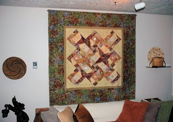 Dancing Log Cabin This quilt is on the wall of a New Hampshire basket maker. The design is one of my originals.